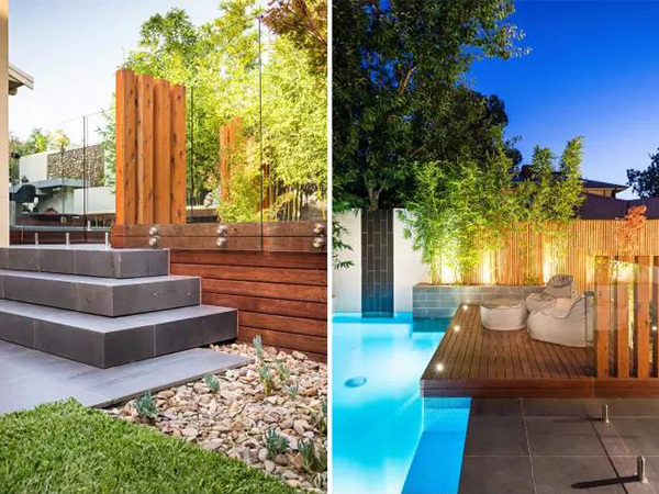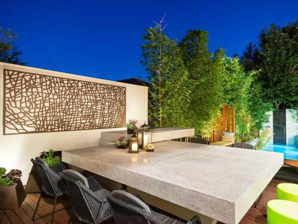 庭院中的構築物形式簡約,材料都是經過精心選擇的高品(pǐn)質材料。