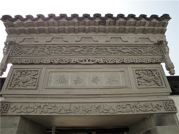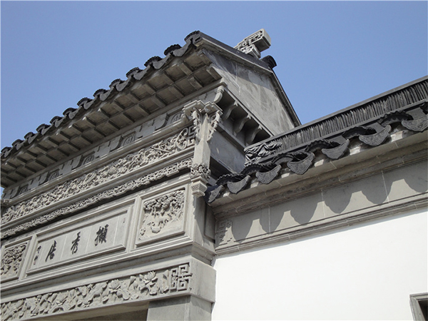 為了顯眼,大門的這一間要比兩邊高(gāo)一些,有自己的(de)山牆,屋頂加高,墀頭牆突出。
